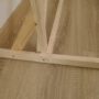 In plaats van takken bouw je deze met houten latten. Voor een winters effect heb ik “sneeuw” (= watten) onderaan en op het dak van het huis gelegd.